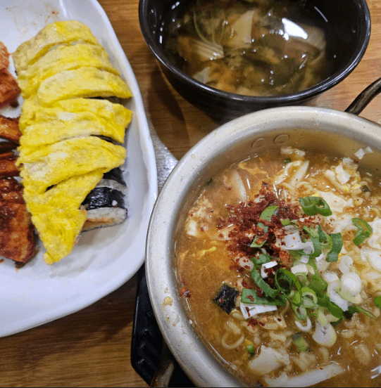 밥거지맵 유저 서면에서 술 마시고 막차로 들르는 필수 코스 (팔미분식 내돈내산) 서면에서 늦게까지 놀거나 술 마시다 보면 묘하게 출출해질 때가 있죠. 국밥은 좀 헤비하고 편의점은 가기 싫을 때, 제가 무조건 향하는 곳이 바로 팔미분식입니다. 24시간 영업이라 새벽에 가도 불이 켜져 있다는 게 최고의 장점이에요. 고민할 필요 없는 고정 메뉴 여기 가면 메뉴판 볼 것도 없이 무조건 '김치말이김밥+시락국' 세트를 시킵니다. 이름은 분식집인데 사실상 이 세트 하나로 서면 바닥에서 오랜 세월 버틴 곳이거든요. 평범한데 계속 들어가는 마성의 맛 김치말이가 우리가 아는 그 차가운 국수 메뉴가 아닙니다. 쫑쫑 썬 김치가 들어간 김밥 위에 얇고 고소한 계란 지단이 덮여서 나옵니다. 그리고 접시 한쪽에 오징어무침이랑 어묵볶음, 달달한 무가 같이 나오는데, 이 반찬들을 김밥 위에 하나씩 얹어 먹는 게 핵심입니다. 솔직히 엄청 고급스러운 재료가 들어간 건 아닌데, 매콤 짭짤한 오징어무침이랑 담백한 계란 김밥의 조화가 기가 막힙니다. 간을 정말 잘 잡으시는 것 같아요. 먹다가 조금 뻑뻑하다 싶을 때 따뜻하고 구수한 시락국(시래기국) 한 숟갈 떠먹으면 속이 싹 풀립니다. 해장으로도 이만한 게 없어요. 솔직한 아쉬운 점과 총평 요즘 물가가 많이 오르다 보니 예전만큼의 엄청난 가성비 느낌은 아닙니다. 세트 하나에 7천 원이니까 어릴 적 저렴하게 먹던 기억을 안고 가면 약간 비싸게 느껴질 수도 있어요. 반찬으로 나오는 어묵 식감이 약간 퍽퍽할 때도 있고요. 하지만 24시간 내내 이 투박하고 정겨운 감칠맛을 즐길 수 있다는 것만으로도 갈 이유는 충분합니다. 매장이 아담해서 혼밥 하러 오시는 분들도 항상 많으니 눈치 볼 필요도 없고요. 서면에서 자극적이지 않고 속 편한 한 끼나 야식 찾는 분들은 꼭 한 번 들러보시길 바랍니다.